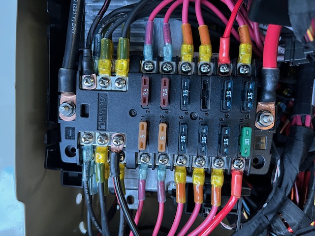 ![]() Photo 3. The MB DC Bus Bar | ![]() Photo 4. The Blue Sea Distribution Box |