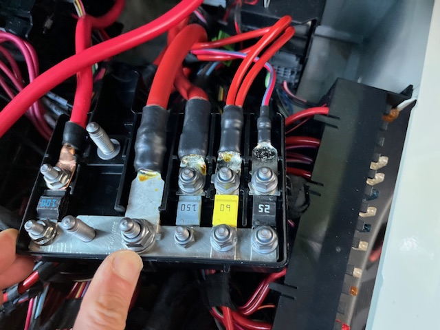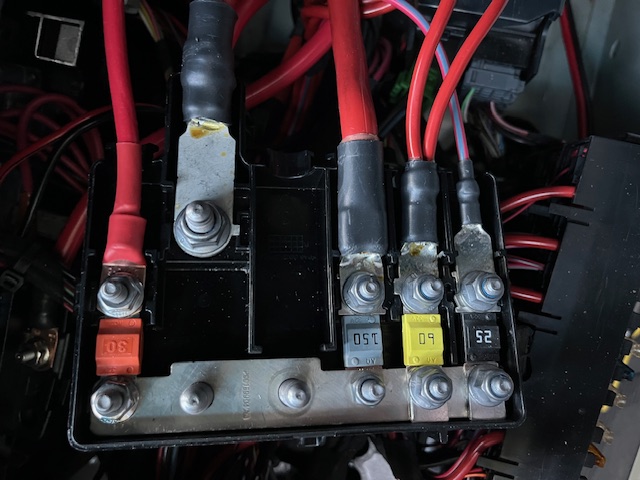 ![]() Photo 1. The MB DC Bus Bar | ![]() Photo 2. The Blue Sea Distribution Box. |